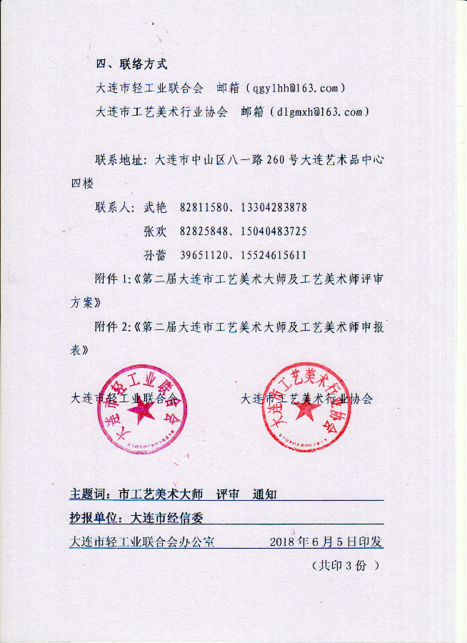 关于开展第二届大连市工艺美术大师工艺美术师评审工作的通知